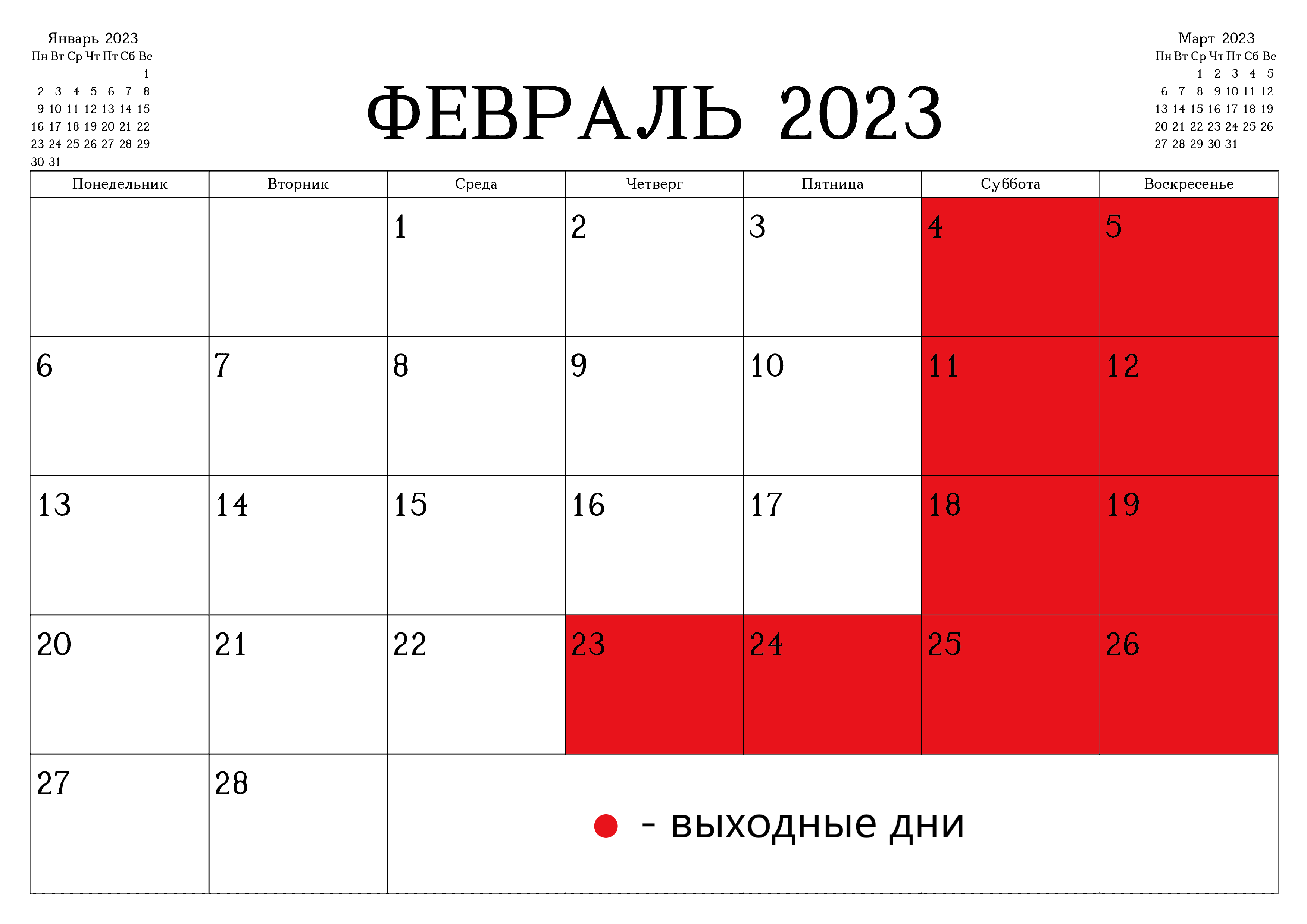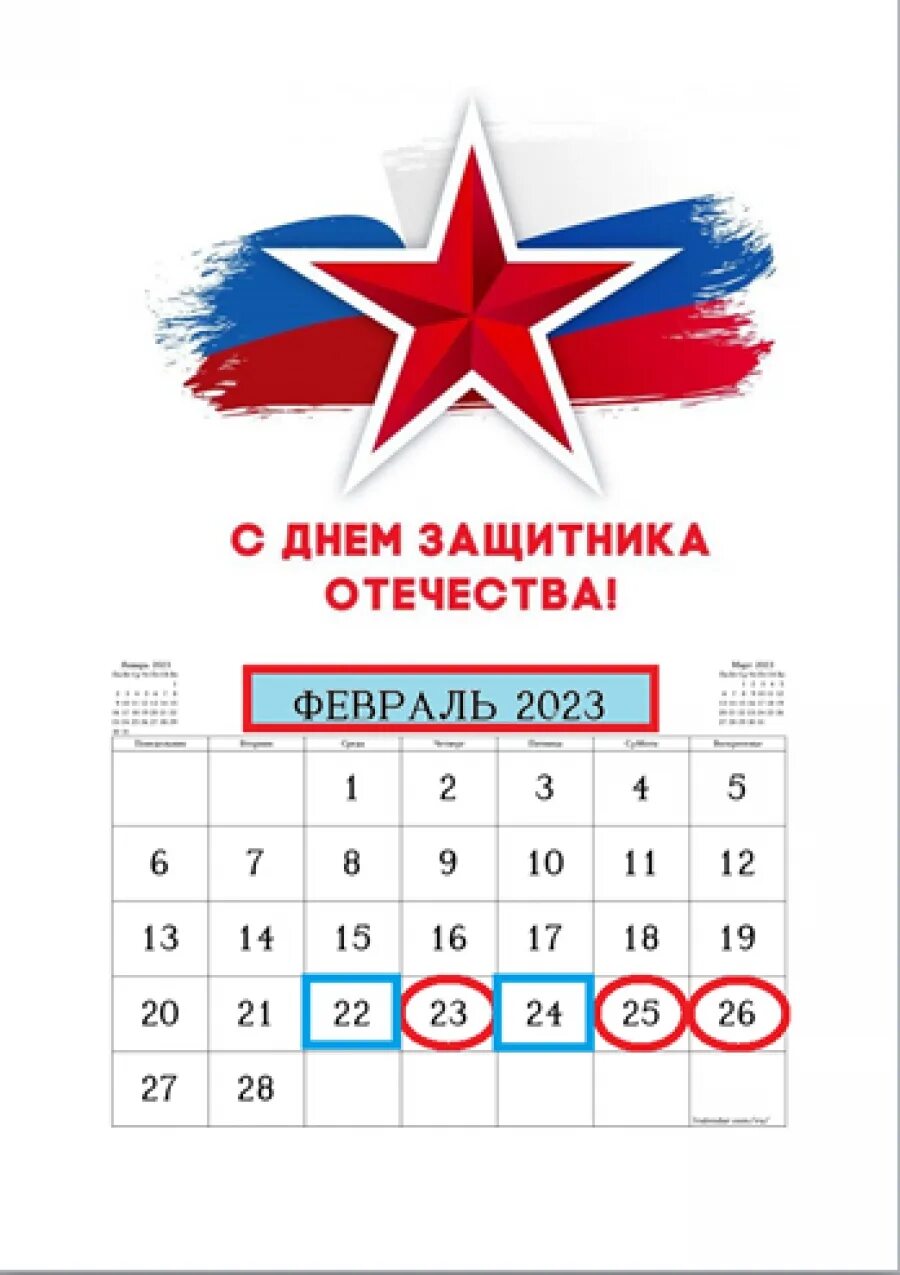 Выходные на 23 февраля 2023.