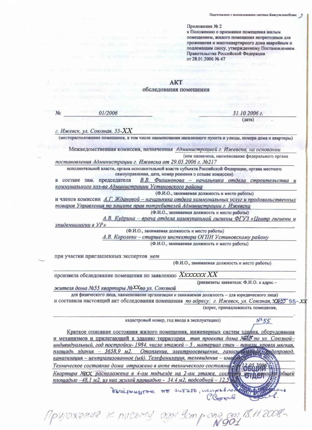 Акт обследования жилого помещения образец