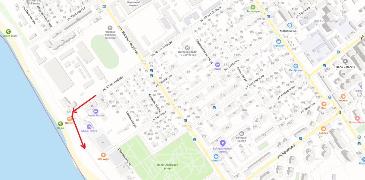 Анапа высокий берег карта с улицами