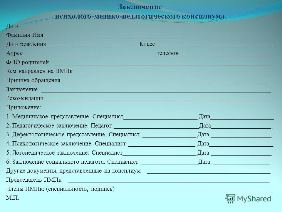 Анкета на пмпк образец заполнения фото