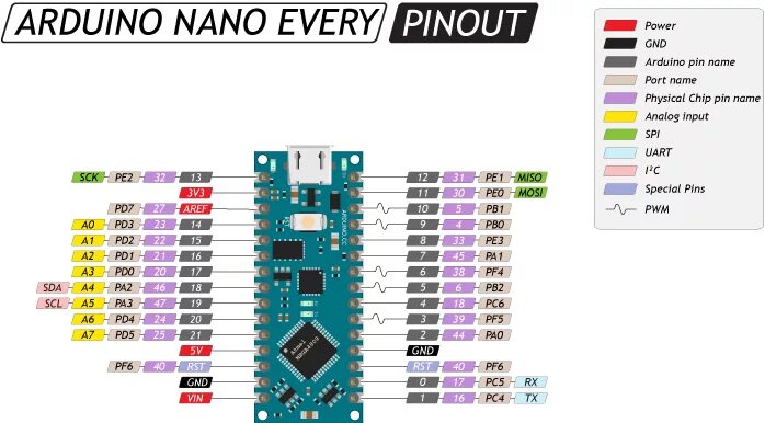 Arduino nano pinout.