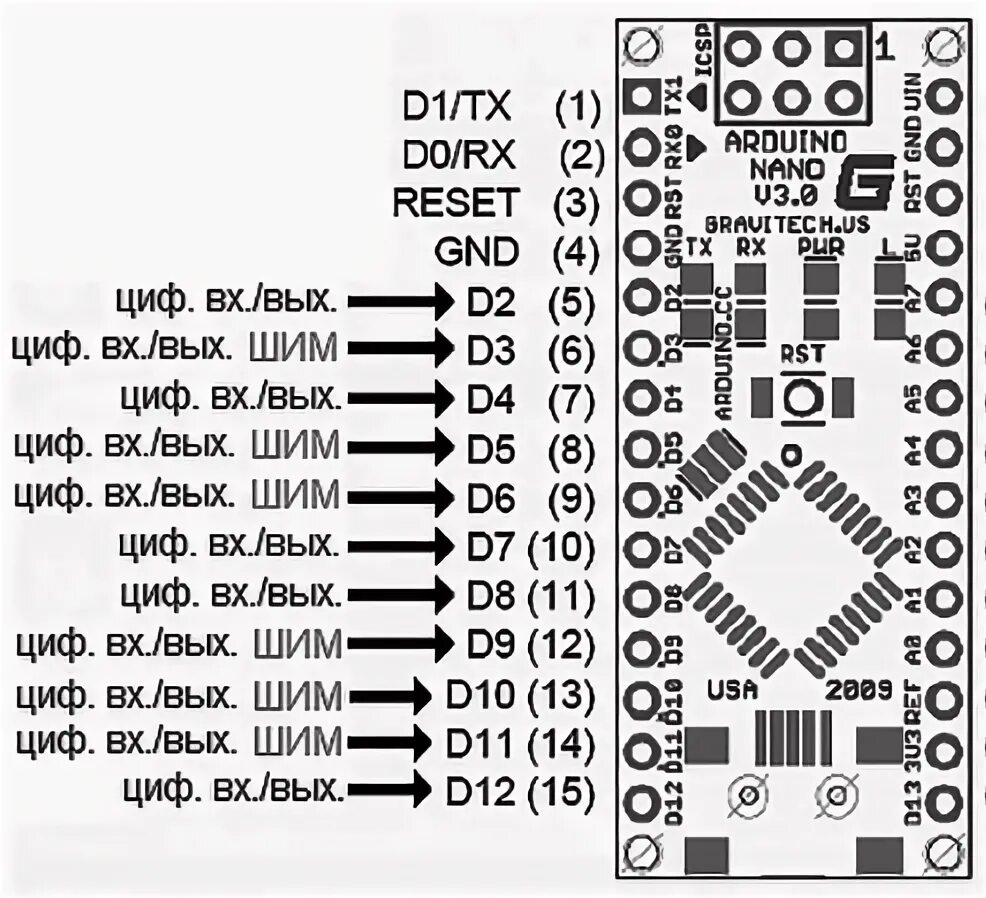 Распиновка Arduino Nano atmega328p.