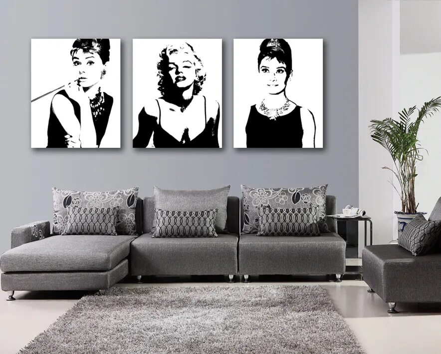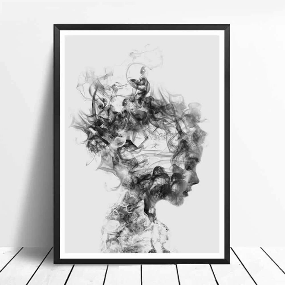 Интерьерная живопись портрет черно-белый.