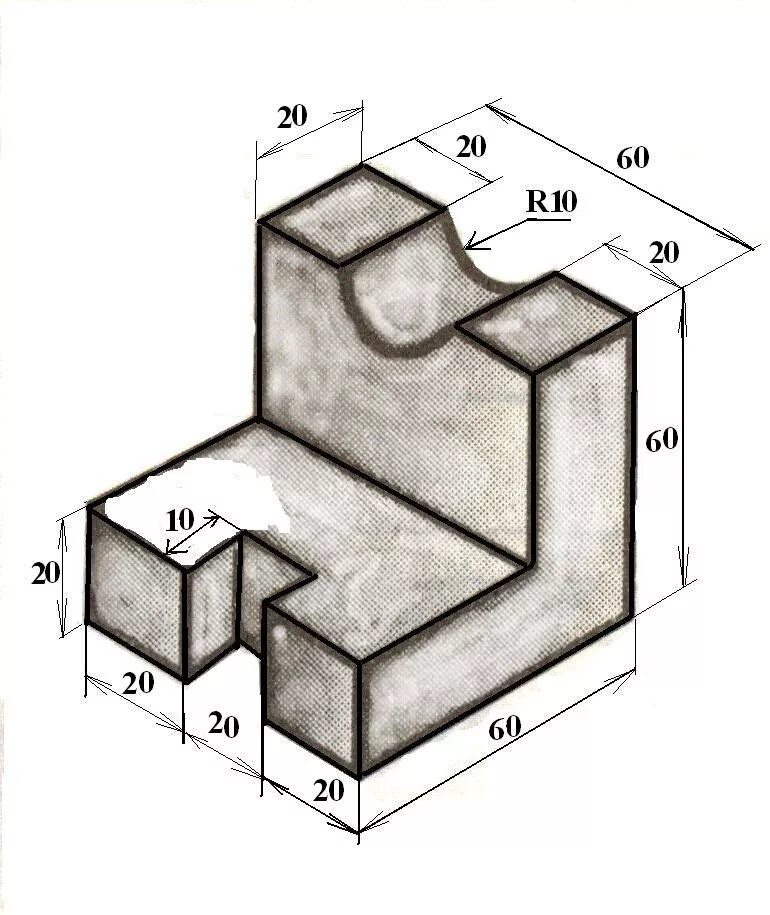 Построение технического рисунка по двум видам.