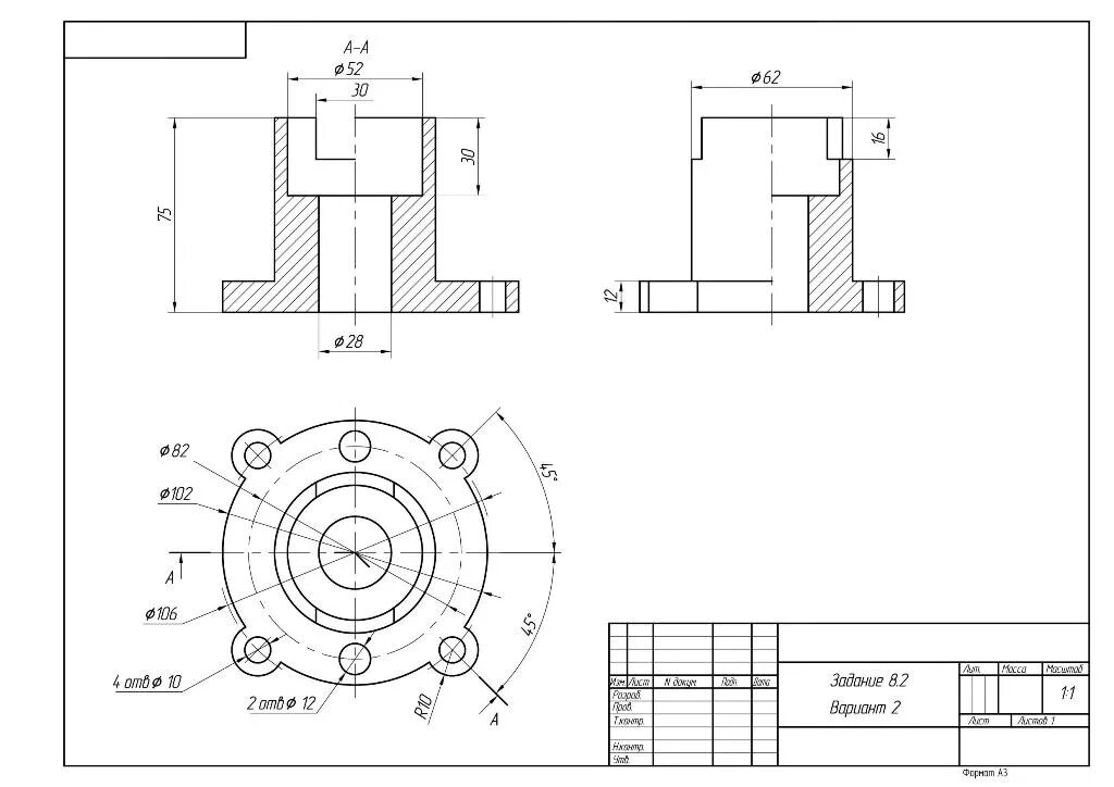 Инженерная Графика вариант 18 крышка фланец.