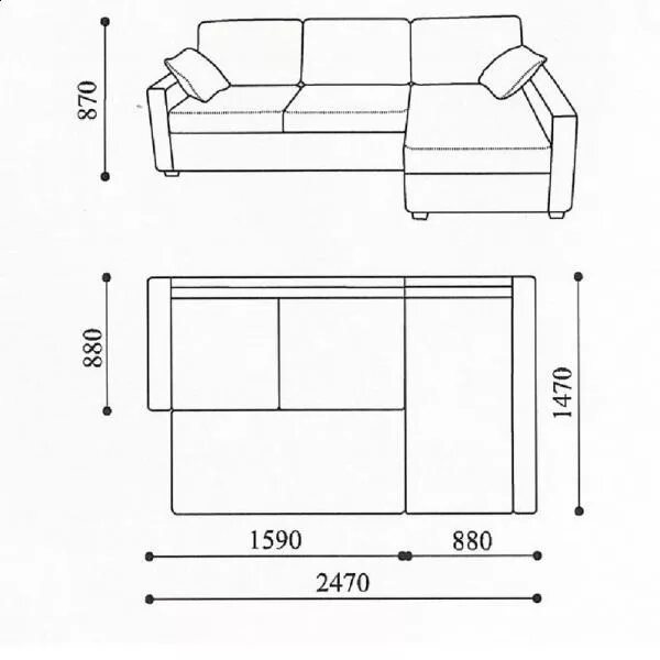 Угловой диван Логан чертеж.
