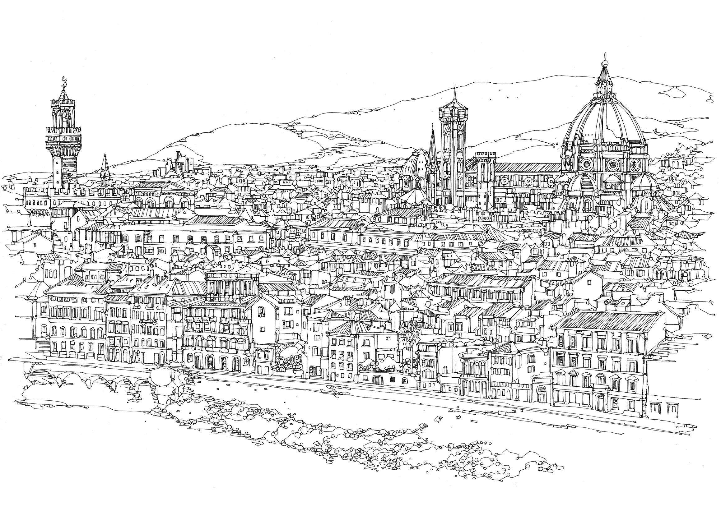 Панорама города карандашом.