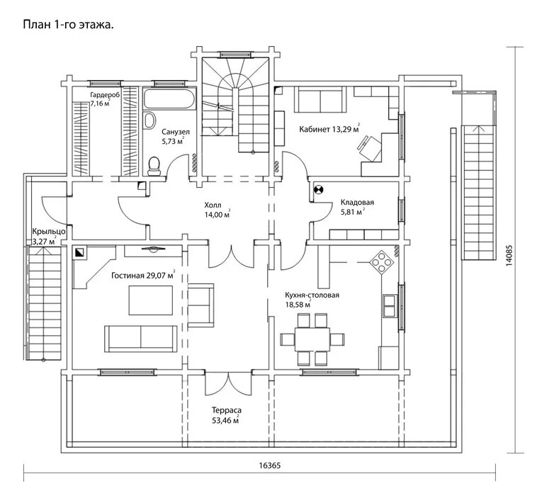 Чертеж внутри двухэтажного дома.