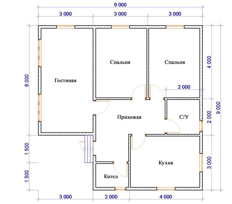 Планировка каркасного дома 10х10 одноэтажный.