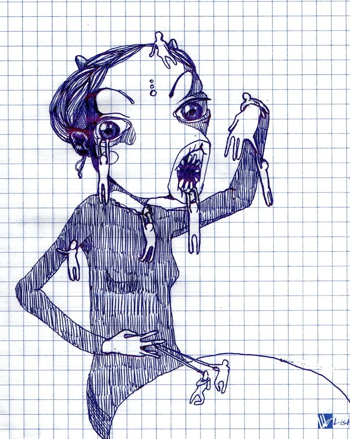Рисование синей ручкой.