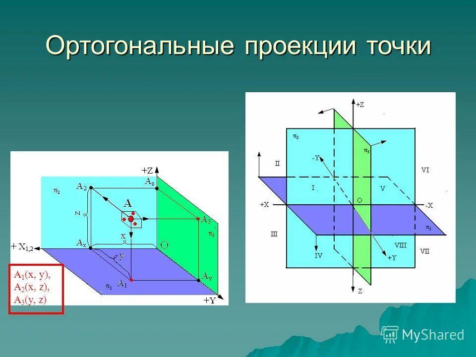 Портогональное проецицирование точки.