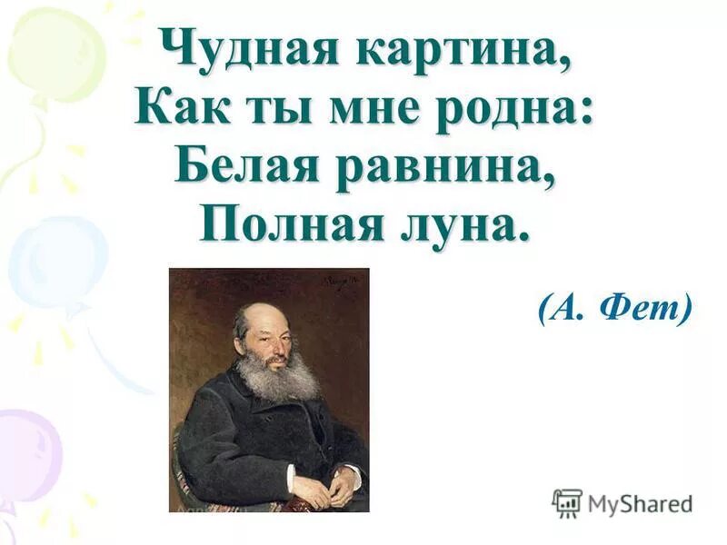 Афанасий Афанасьевич Фет чудная картина.