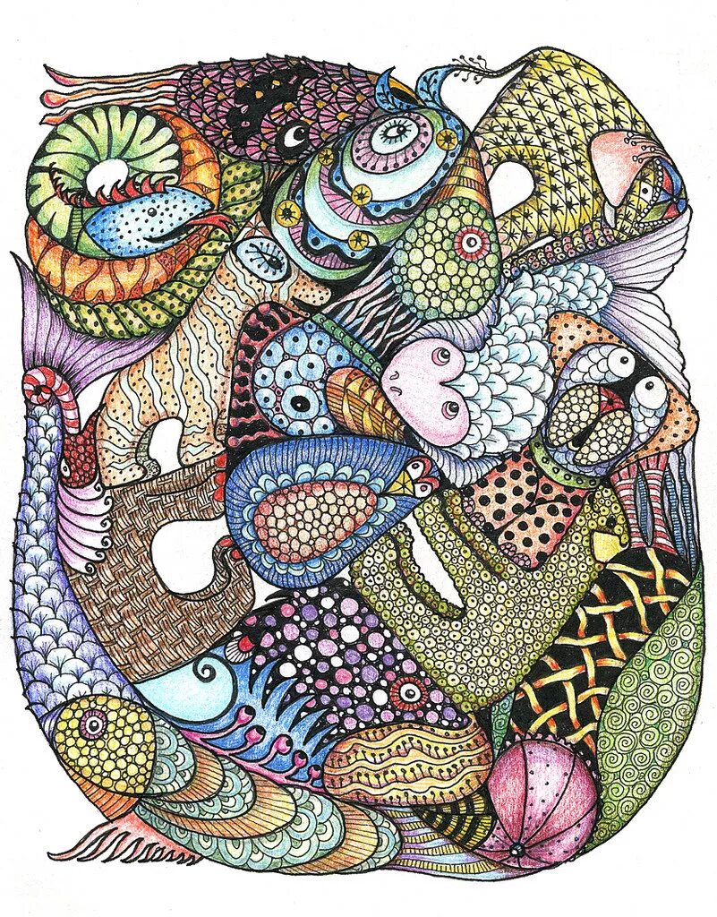 Морской конек Зентангл.