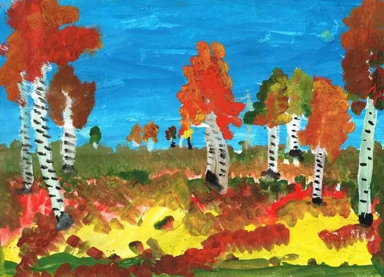 Пейзаж красками для детского сада.