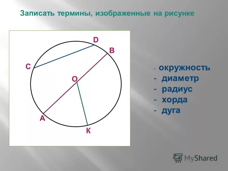 Диаметр и радиус окружности рисунок.