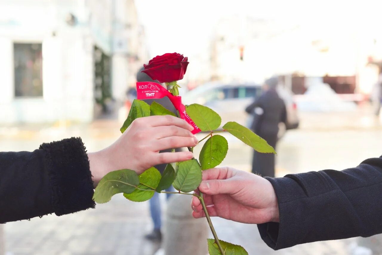 Роза в протянутой руке.