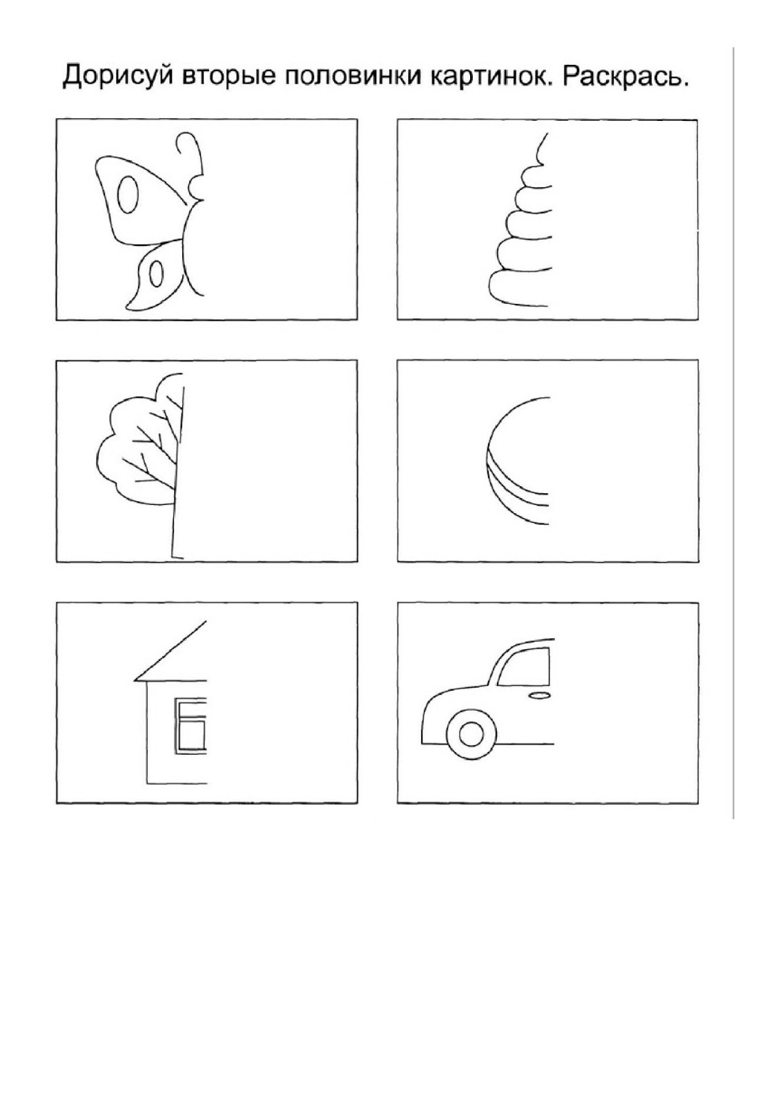 Задания для детей дорисуй вторую половину.