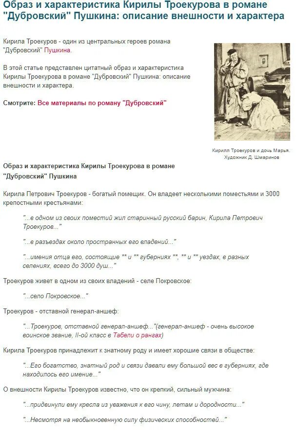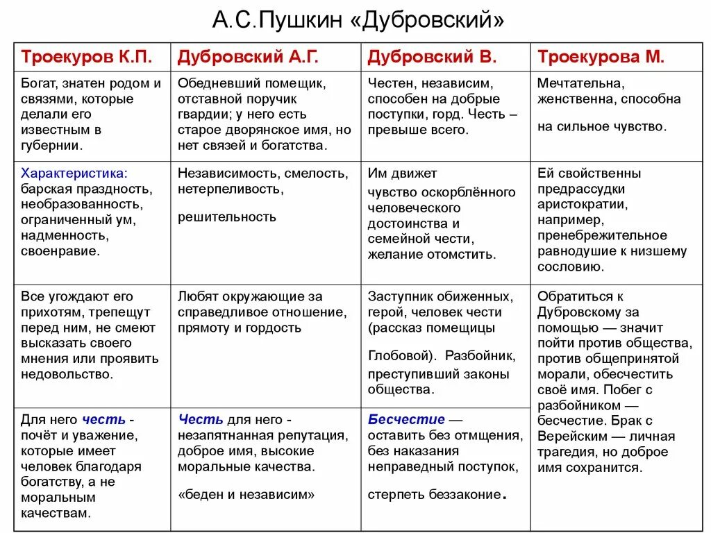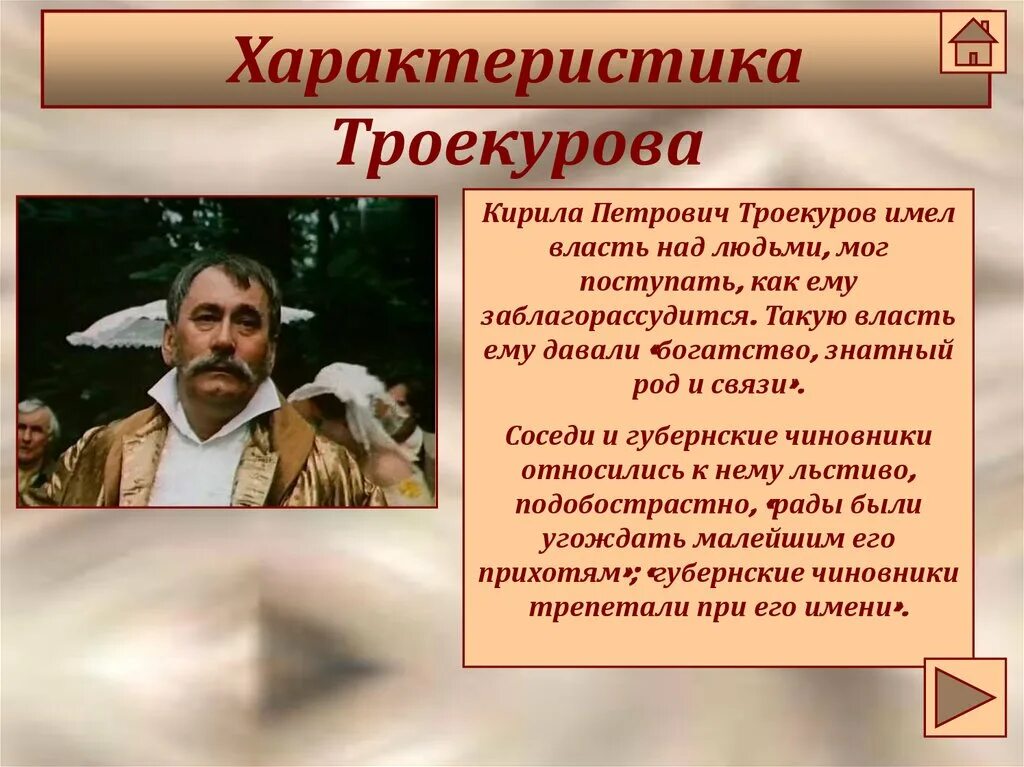 Дубровский характеристика троекурова.