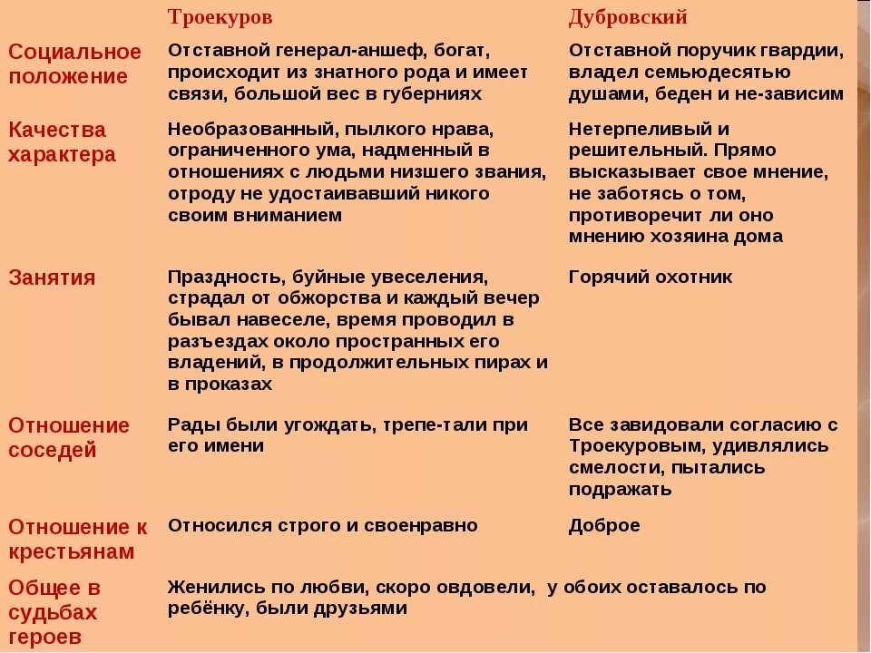 Троекуров и Дубровский сравнительная характеристика.