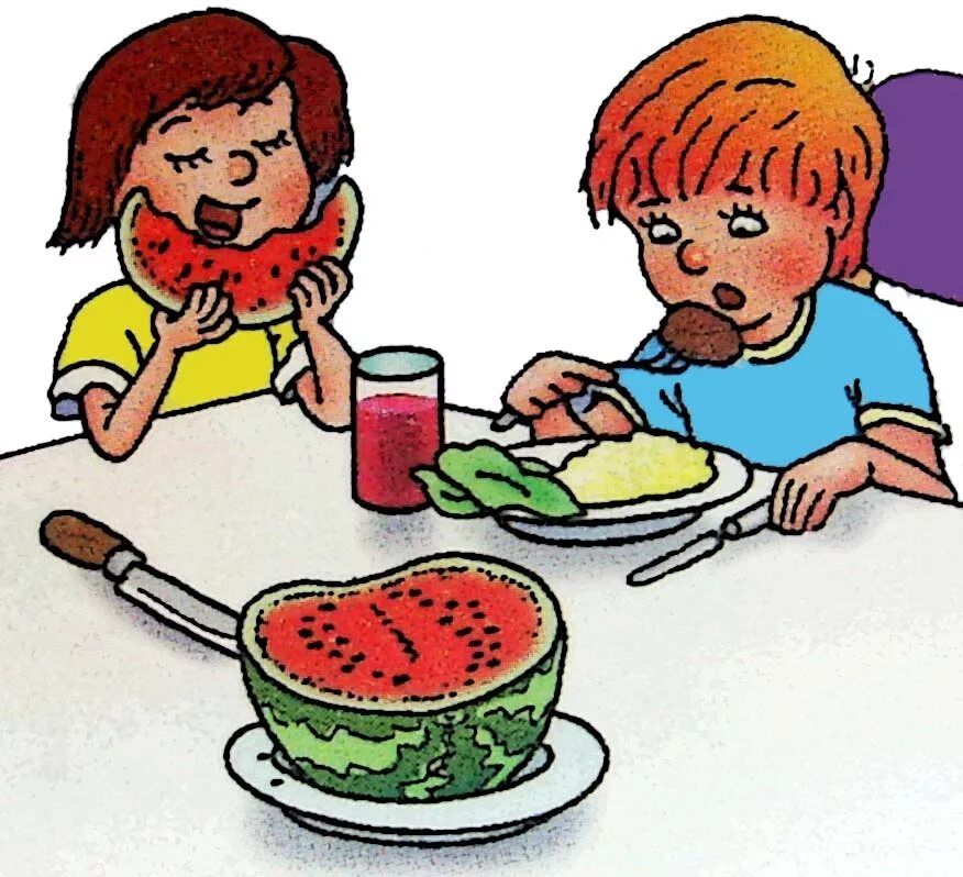 Мультяшные дети едят.