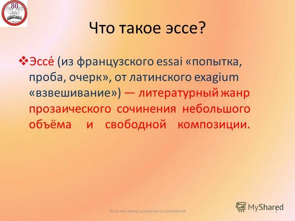 Эссе на тему образец.