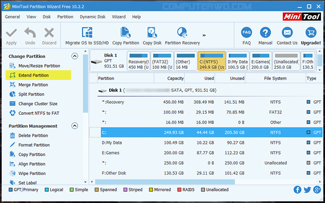 MINITOOL Partition Wizard GPT.