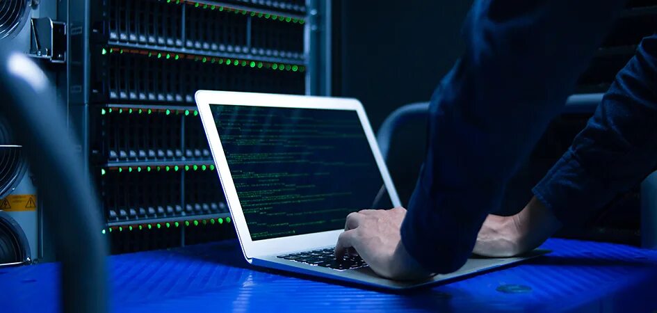 Человек держит компьютер.