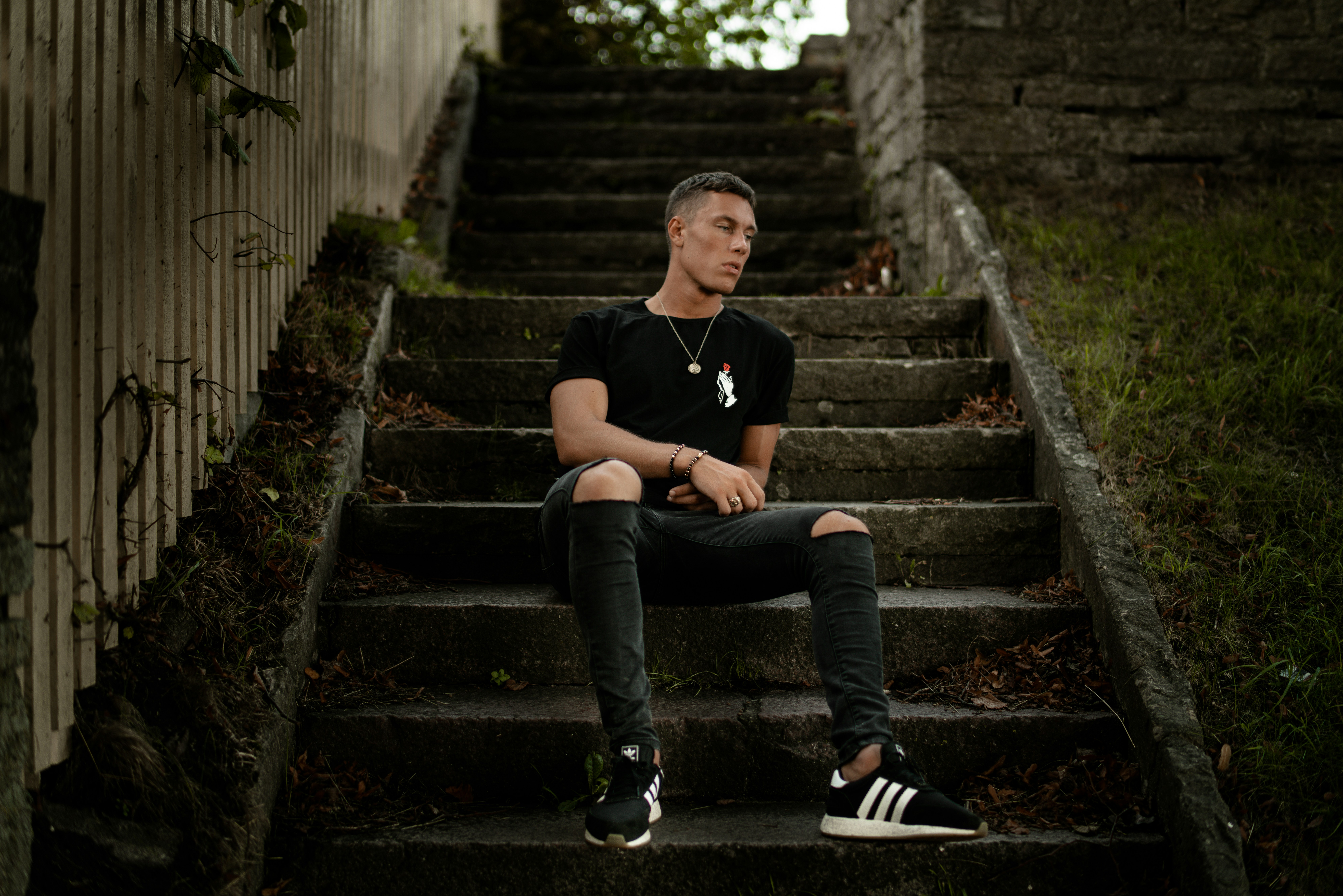 Мужчина сидит.