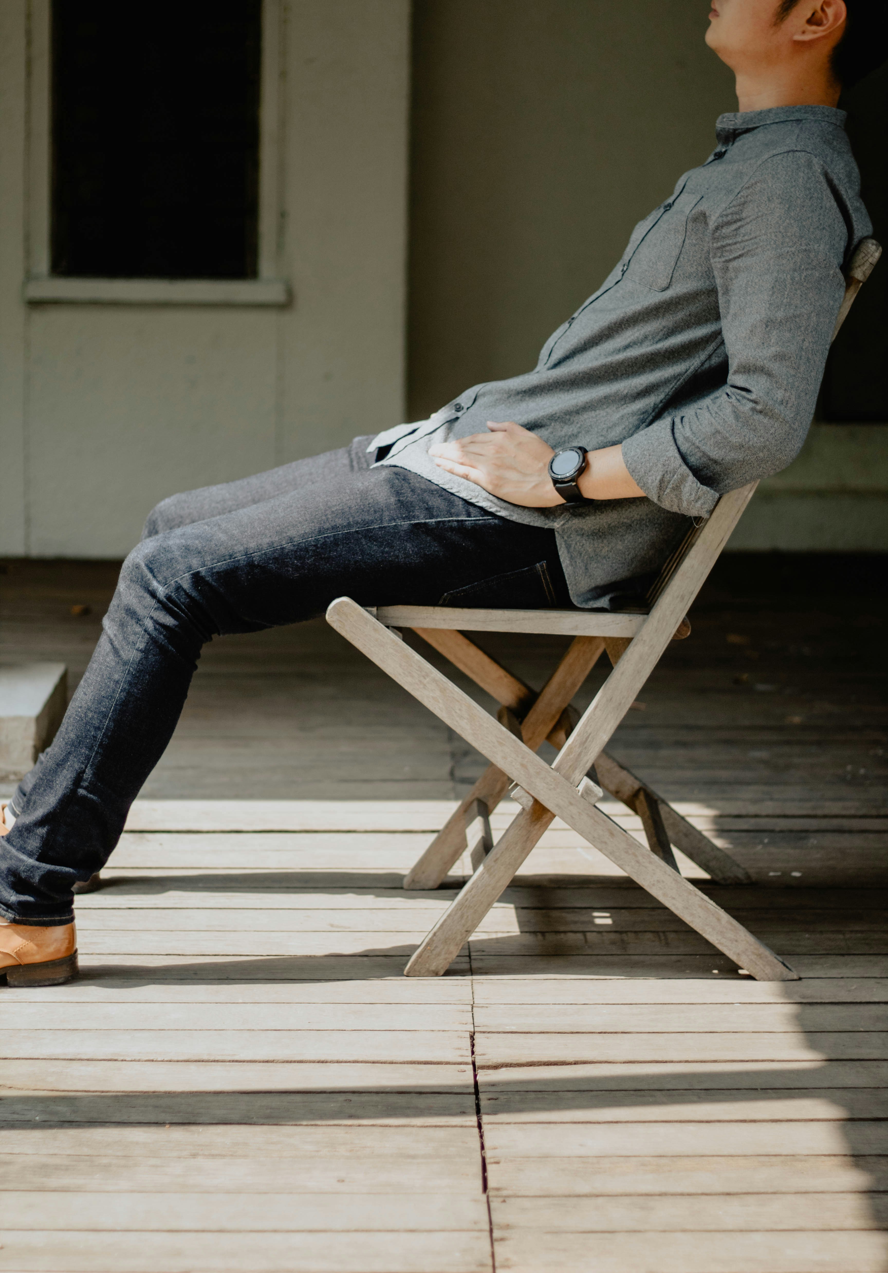 Человек сидит на стуле.