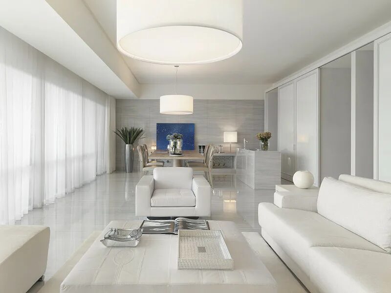Белый интерьер гостиной.