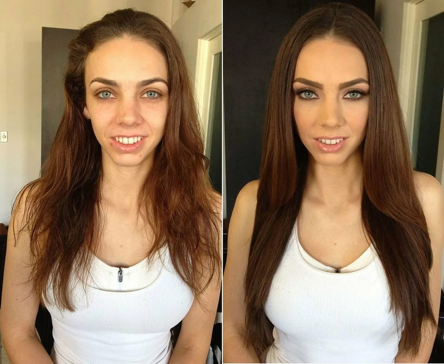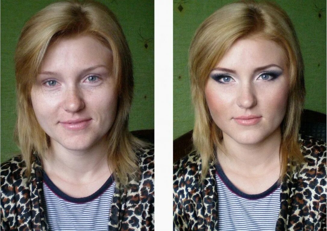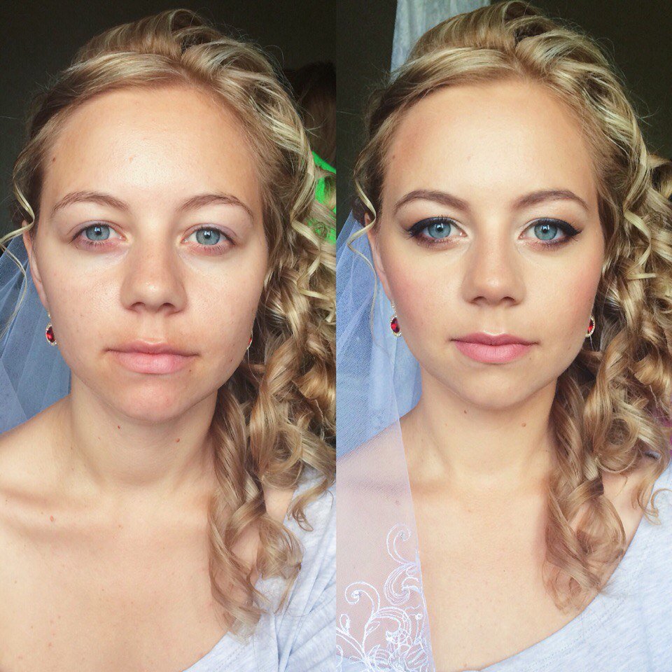 Макияж до и после.