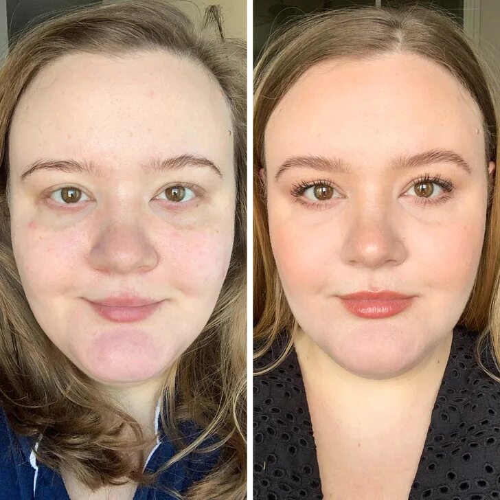 Девушки до и после макияжа.