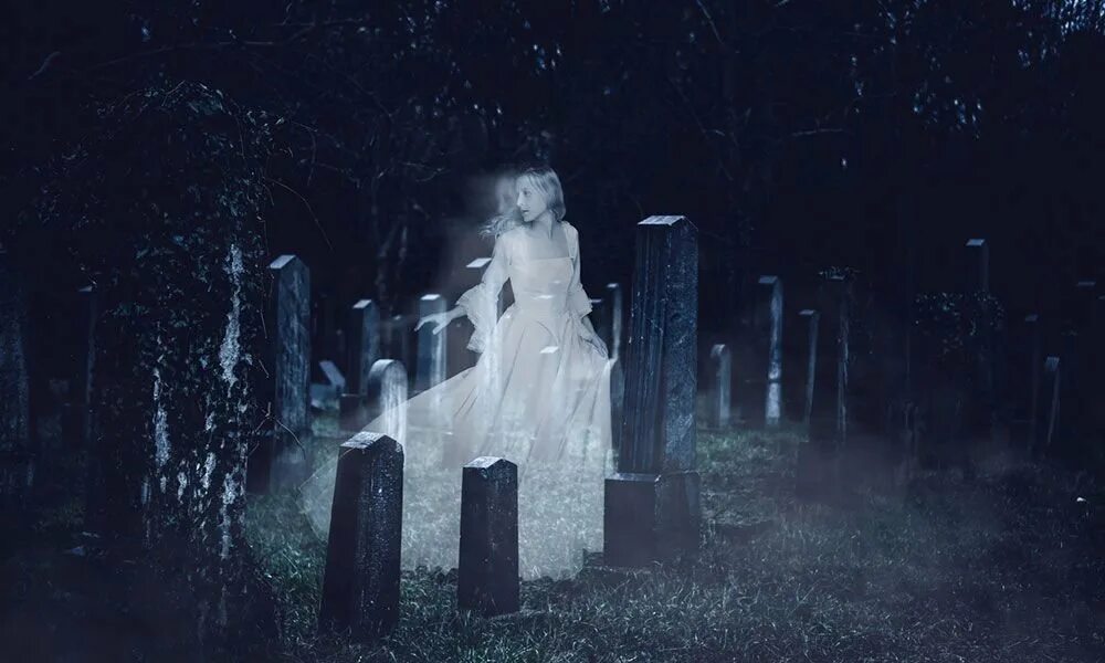 Дух на кладбище.