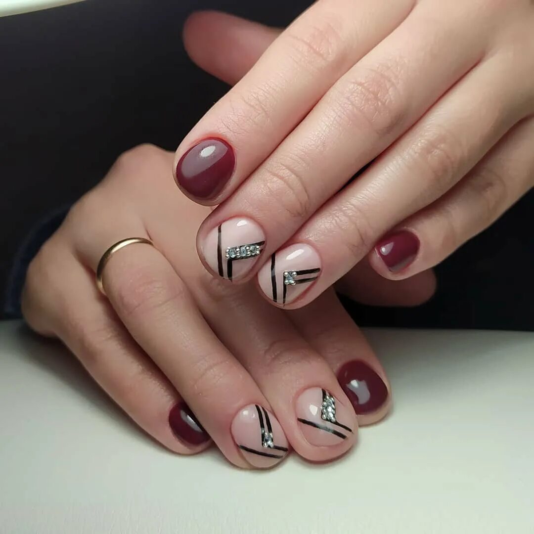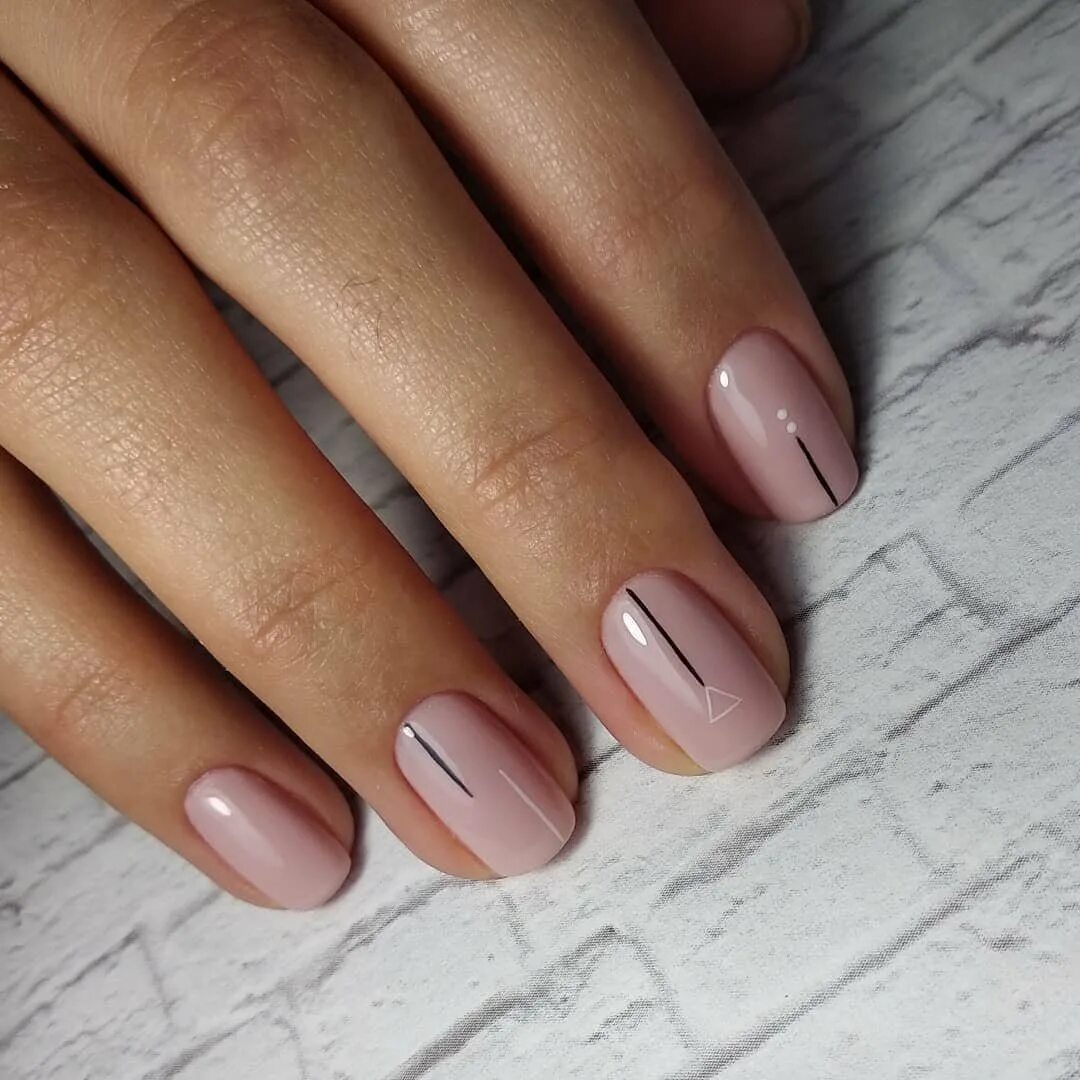 Скромный маникюр на коротких ногтях.