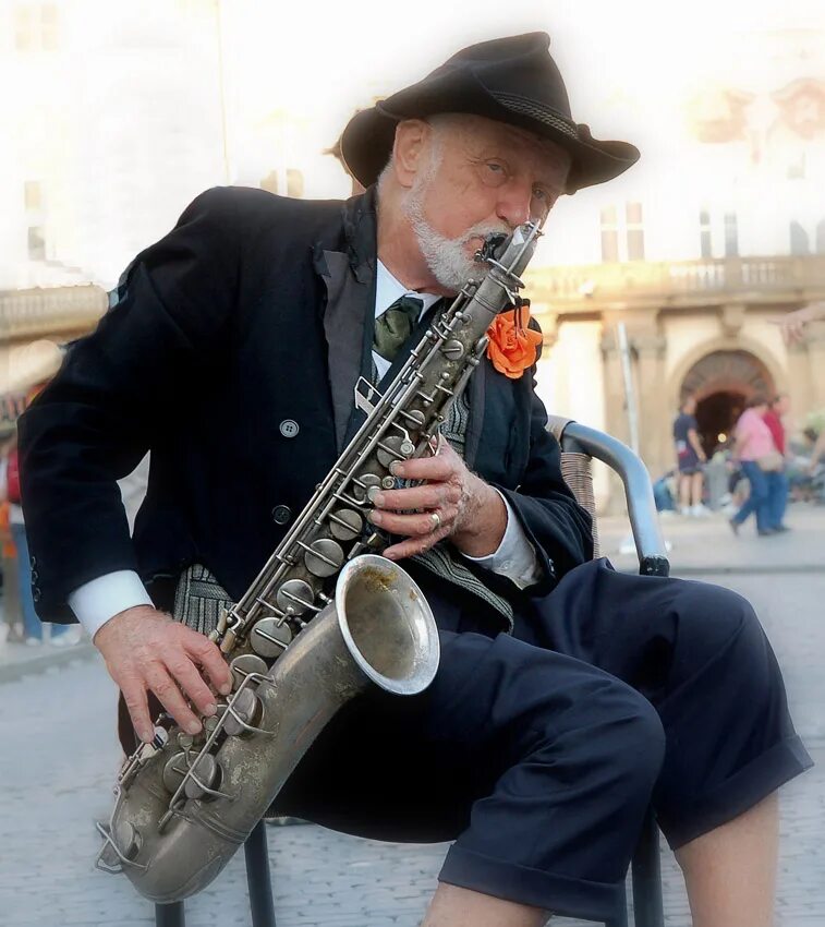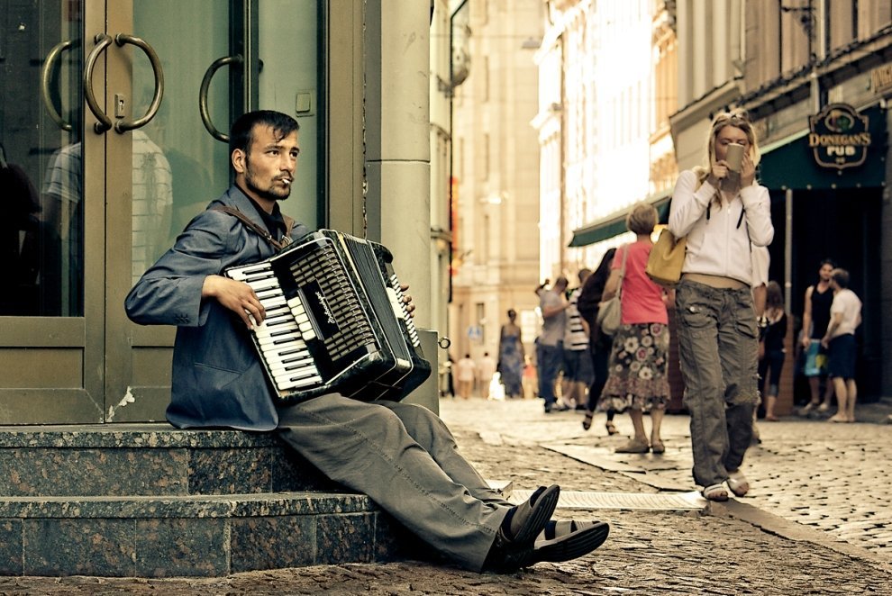 Мужчина с музыкальным инструментом.