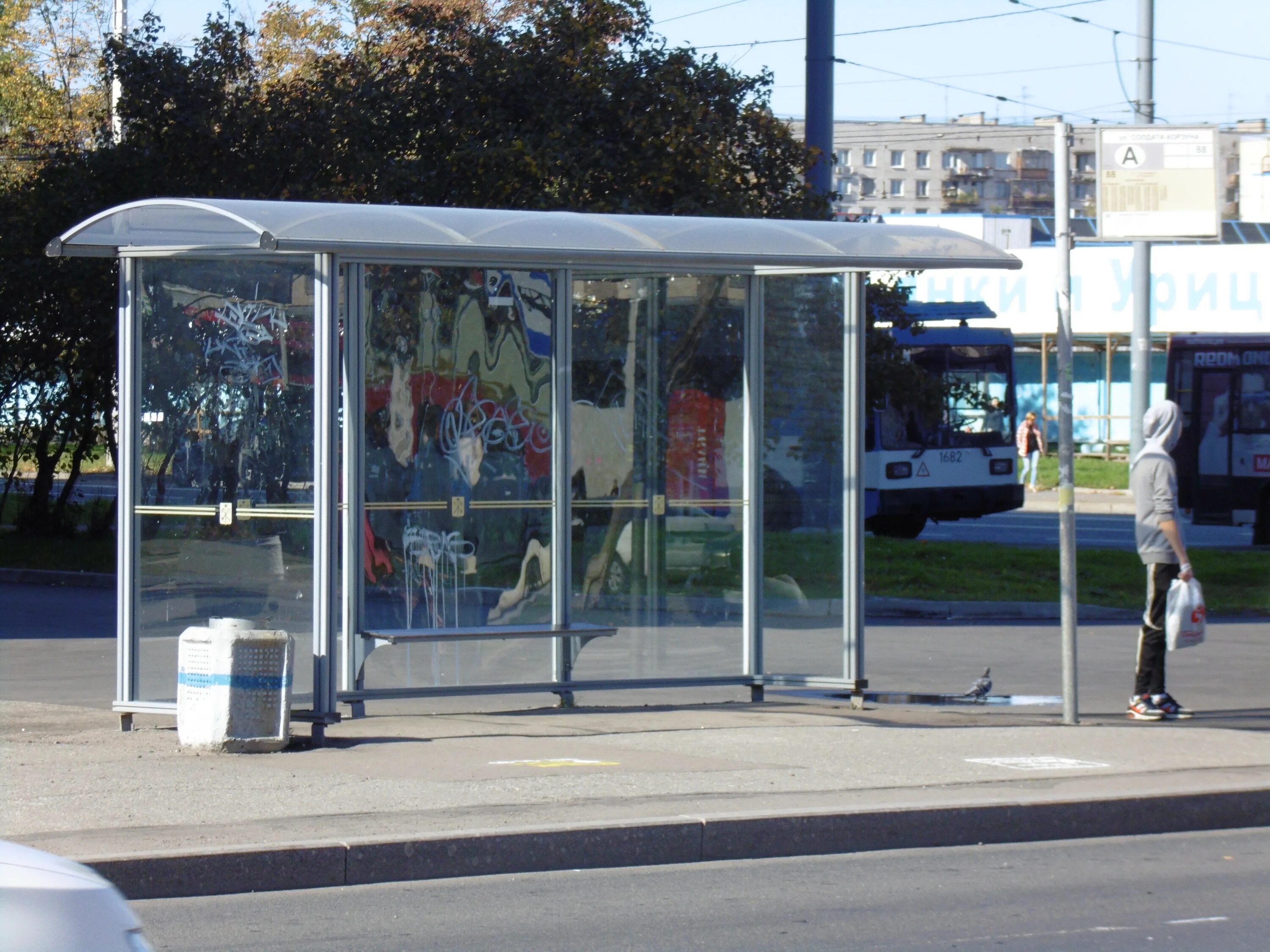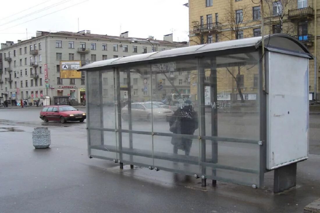Стеклянные автобусные остановки.