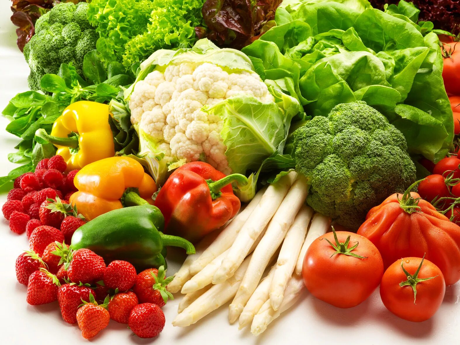 Цветные овощи и фрукты.