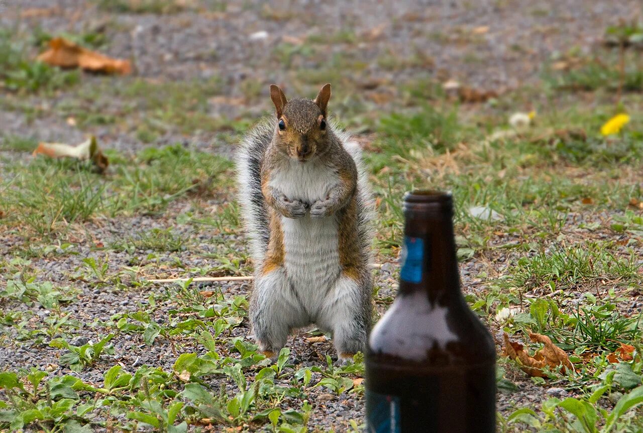 Белка убегает.