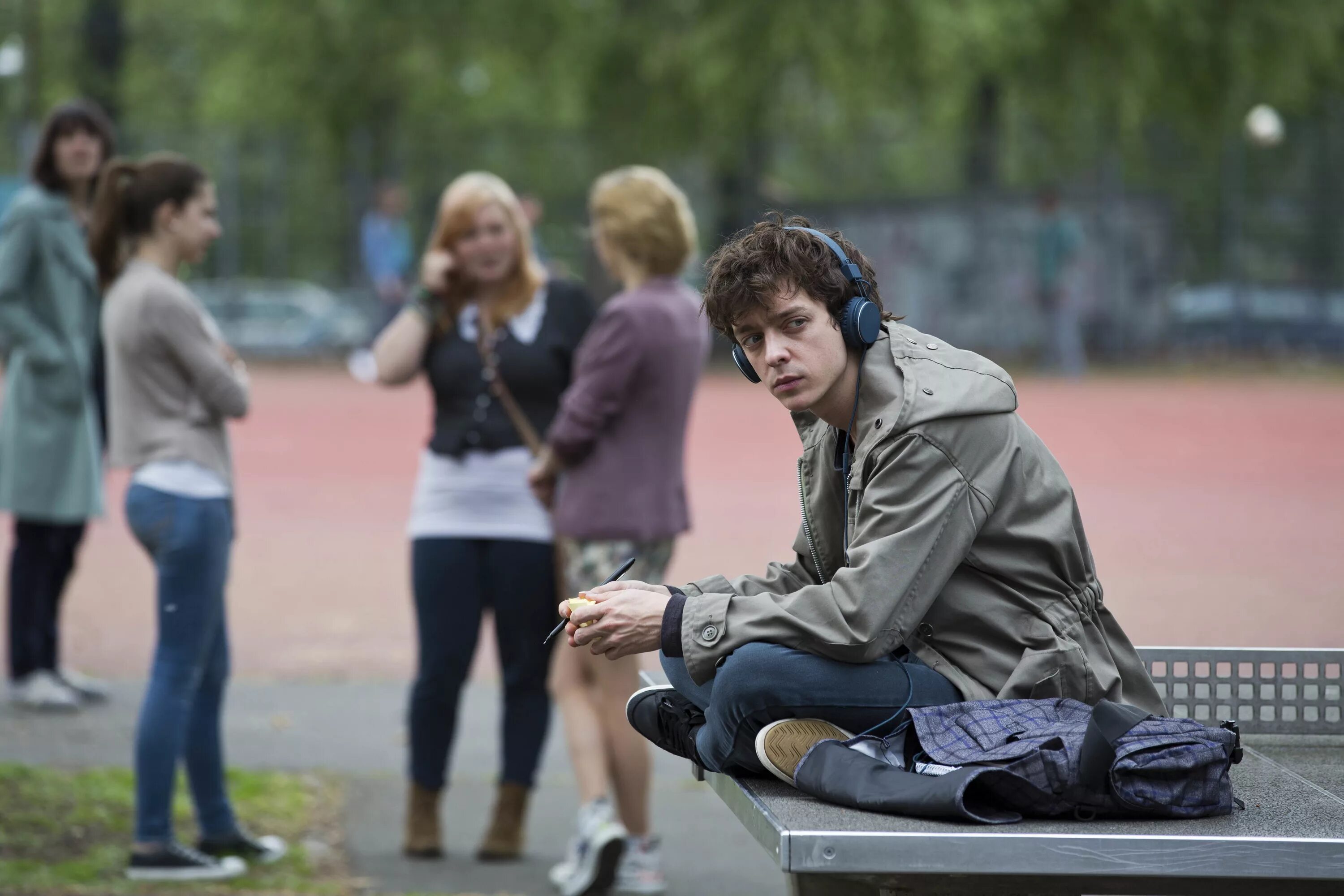 Парень с букетом.