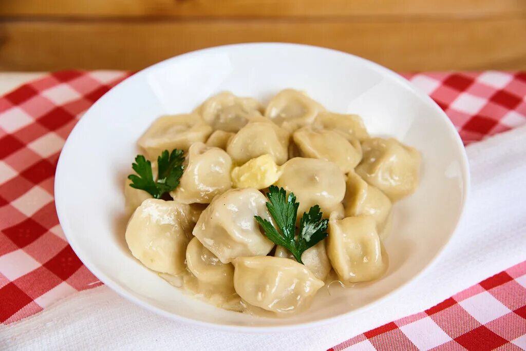 Миска пельменей.