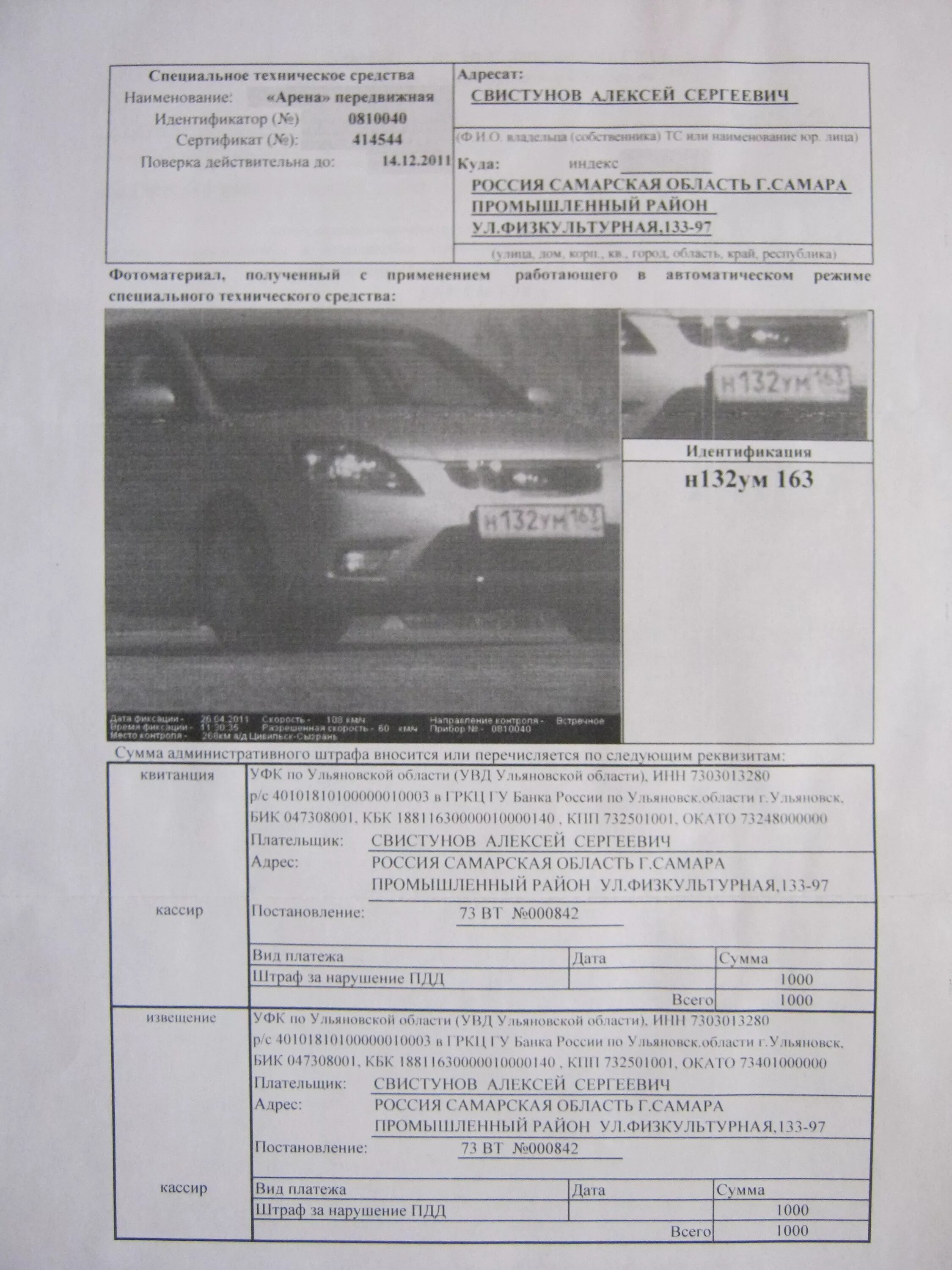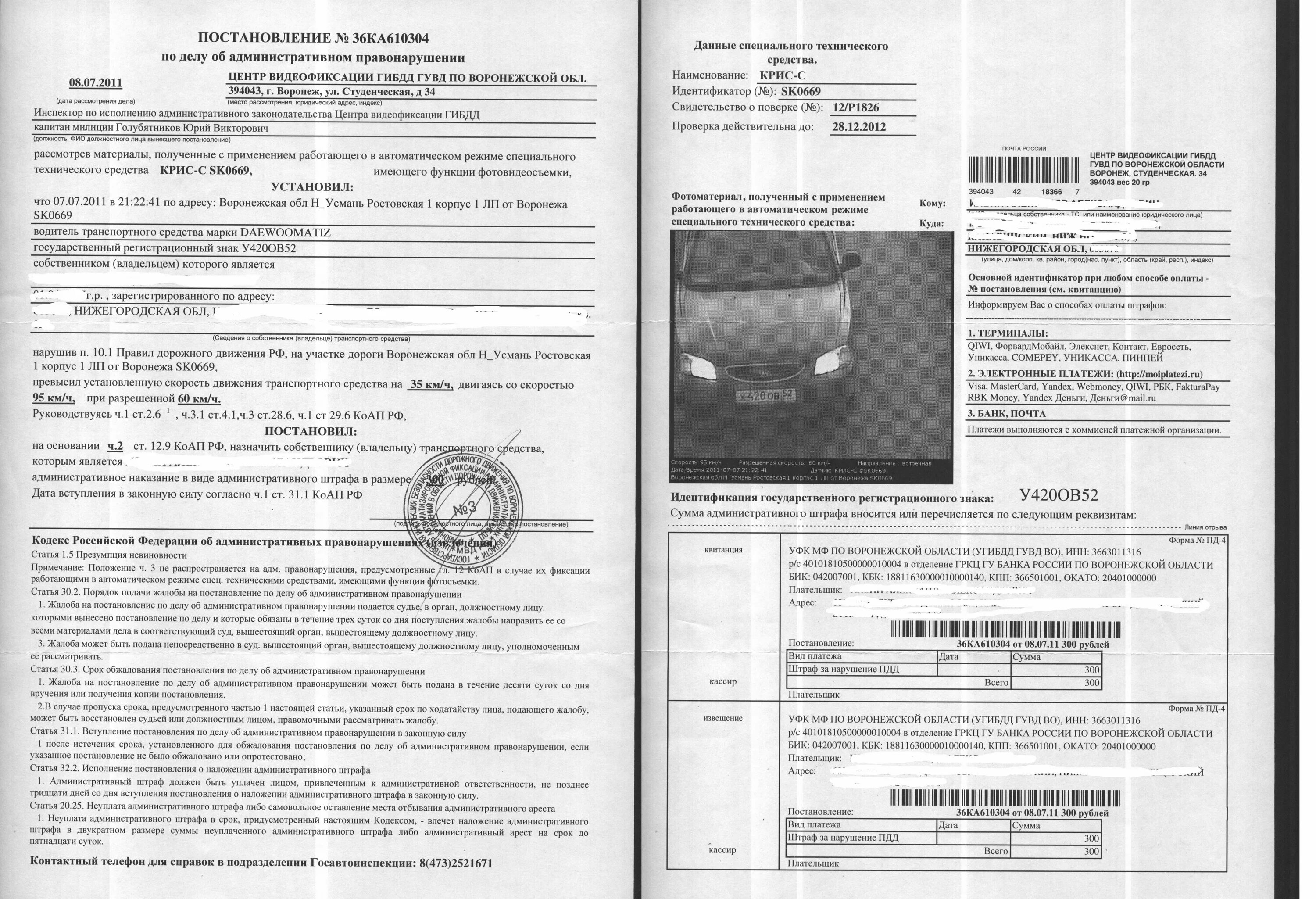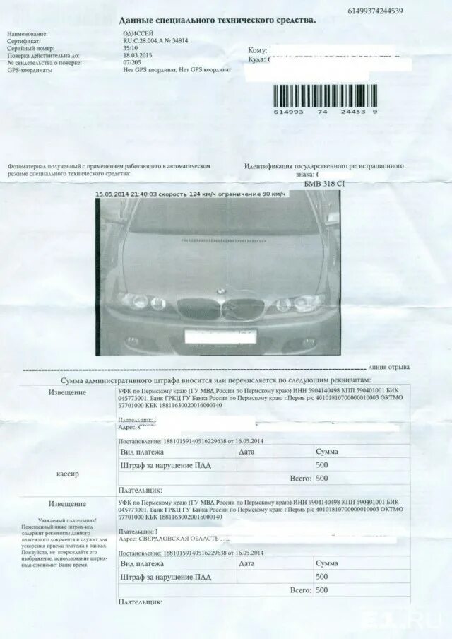 Фото штрафа по постановлению