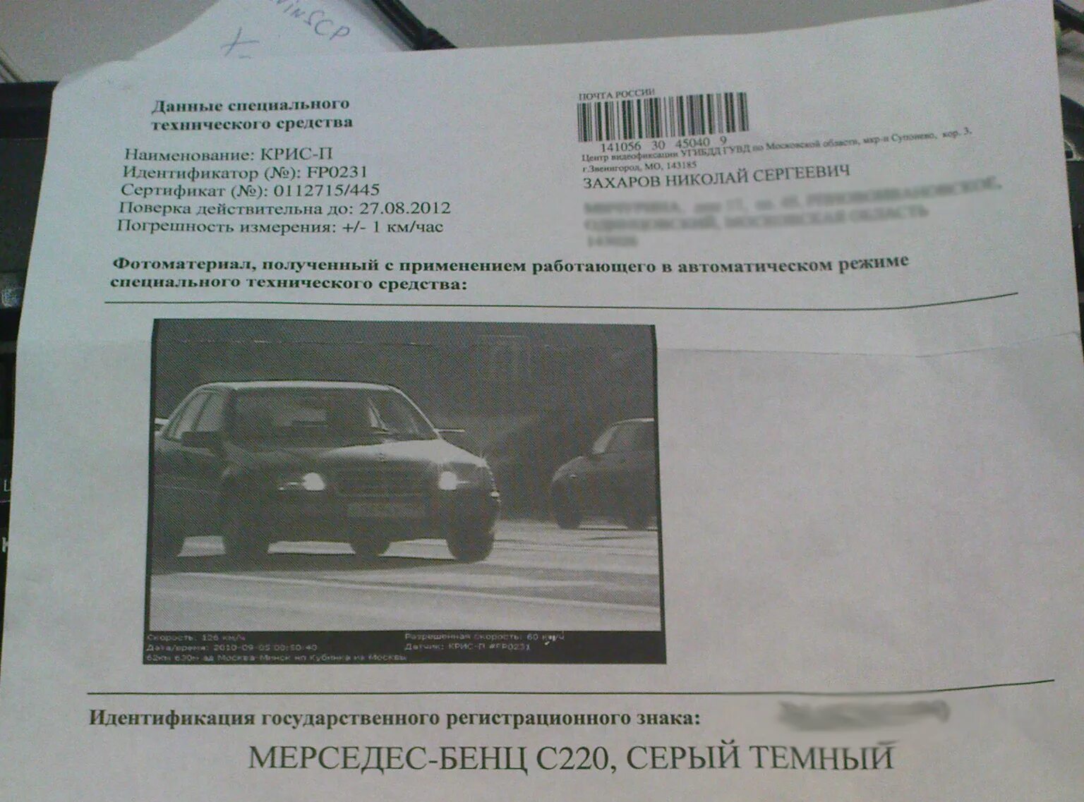 Письмо со штрафом.