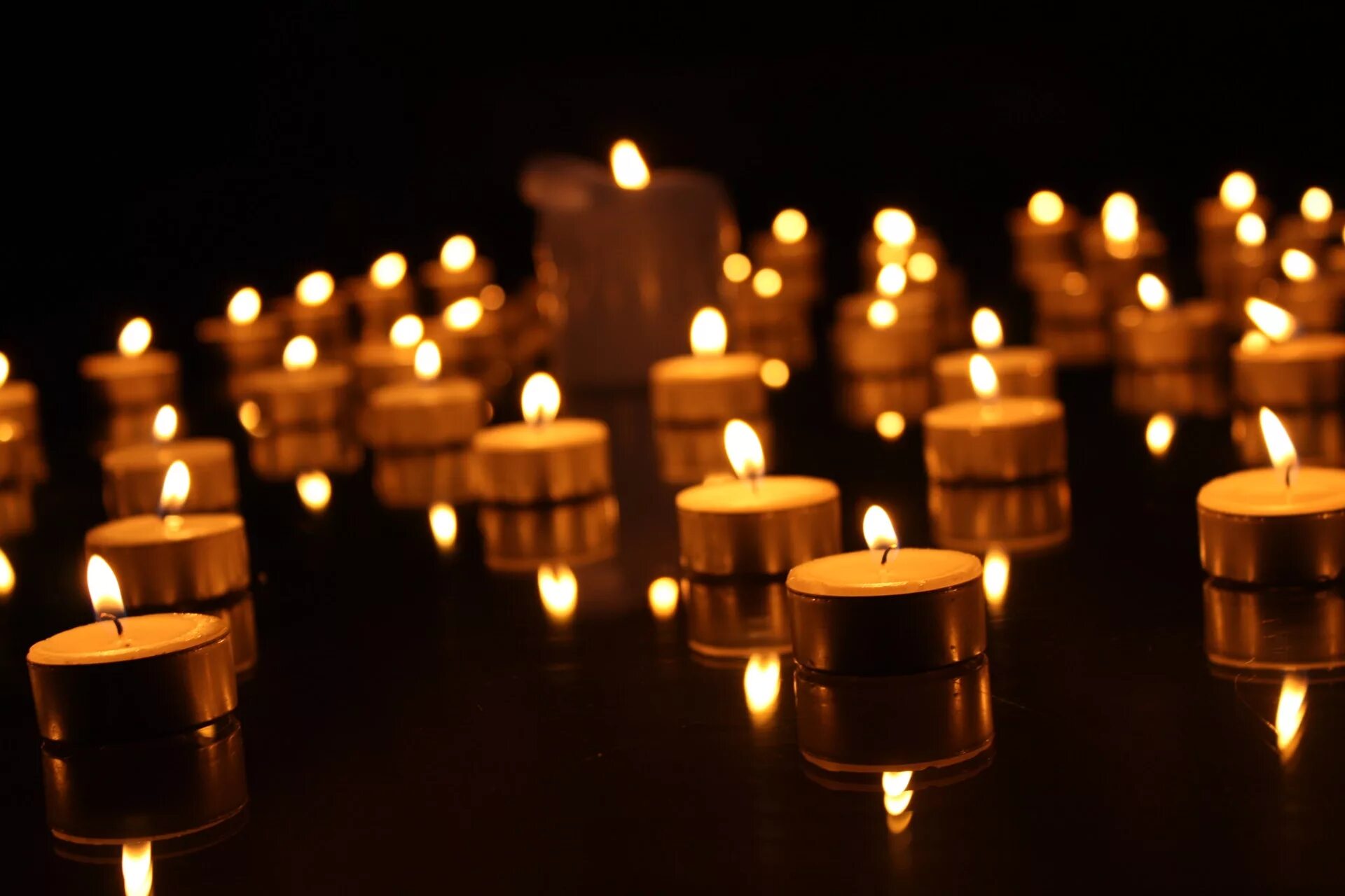 Много свечей в темноте.