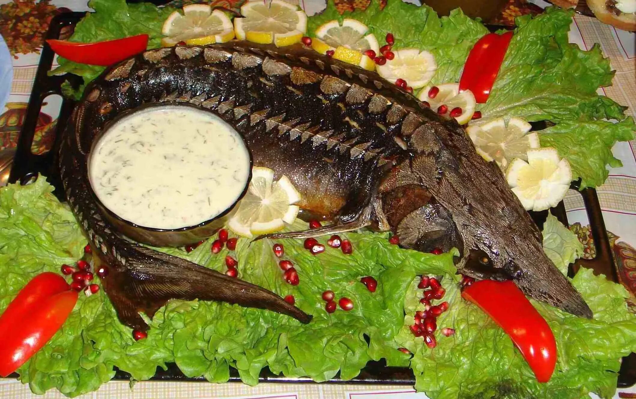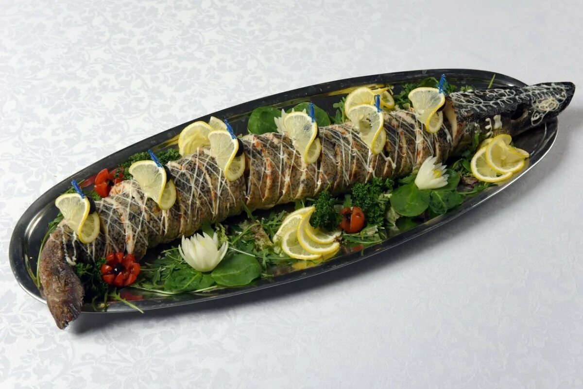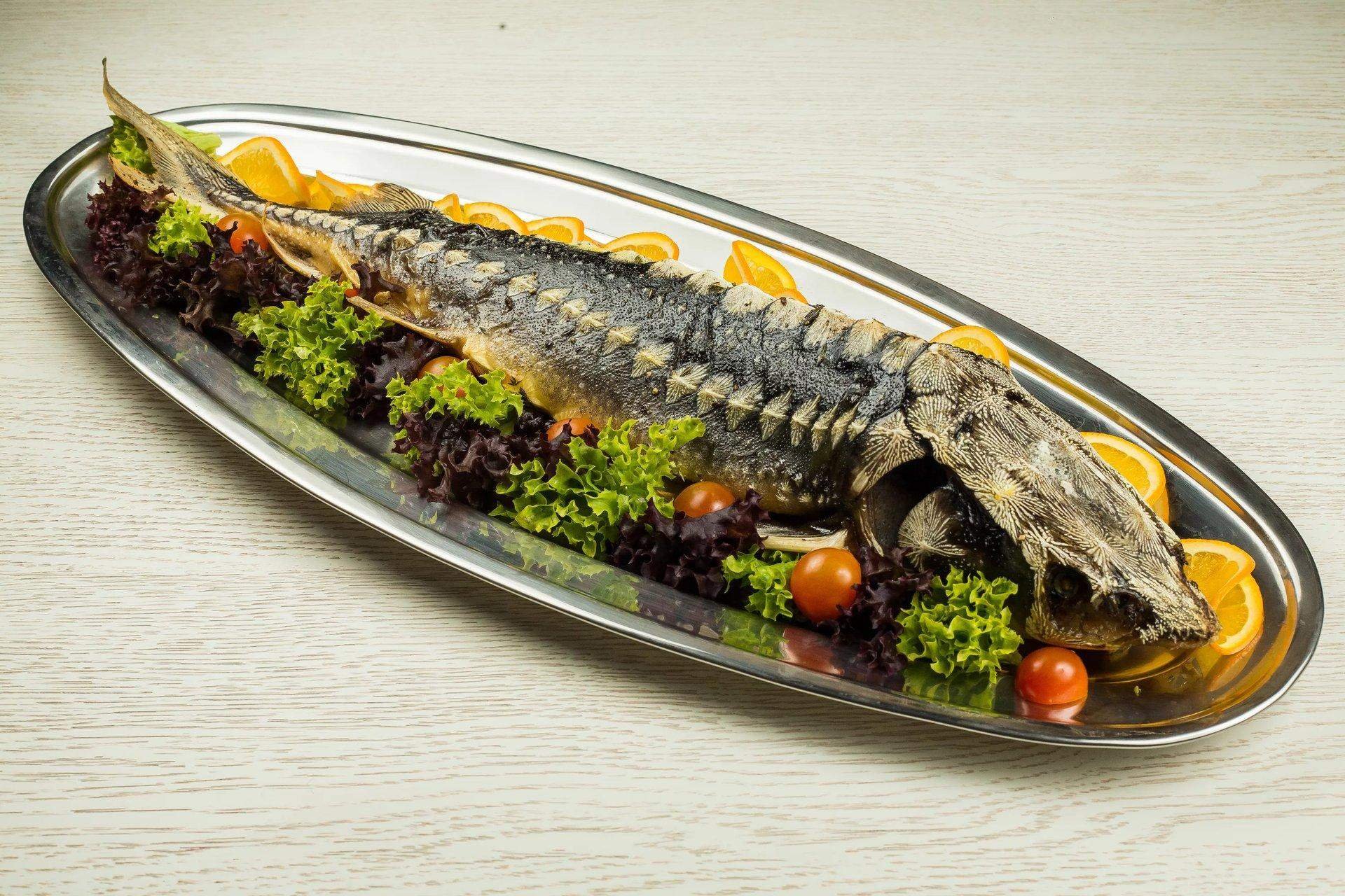 Стерлядь запеченная целиком.