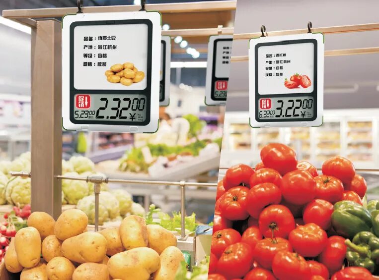 Ценник овощей в супермаркете.