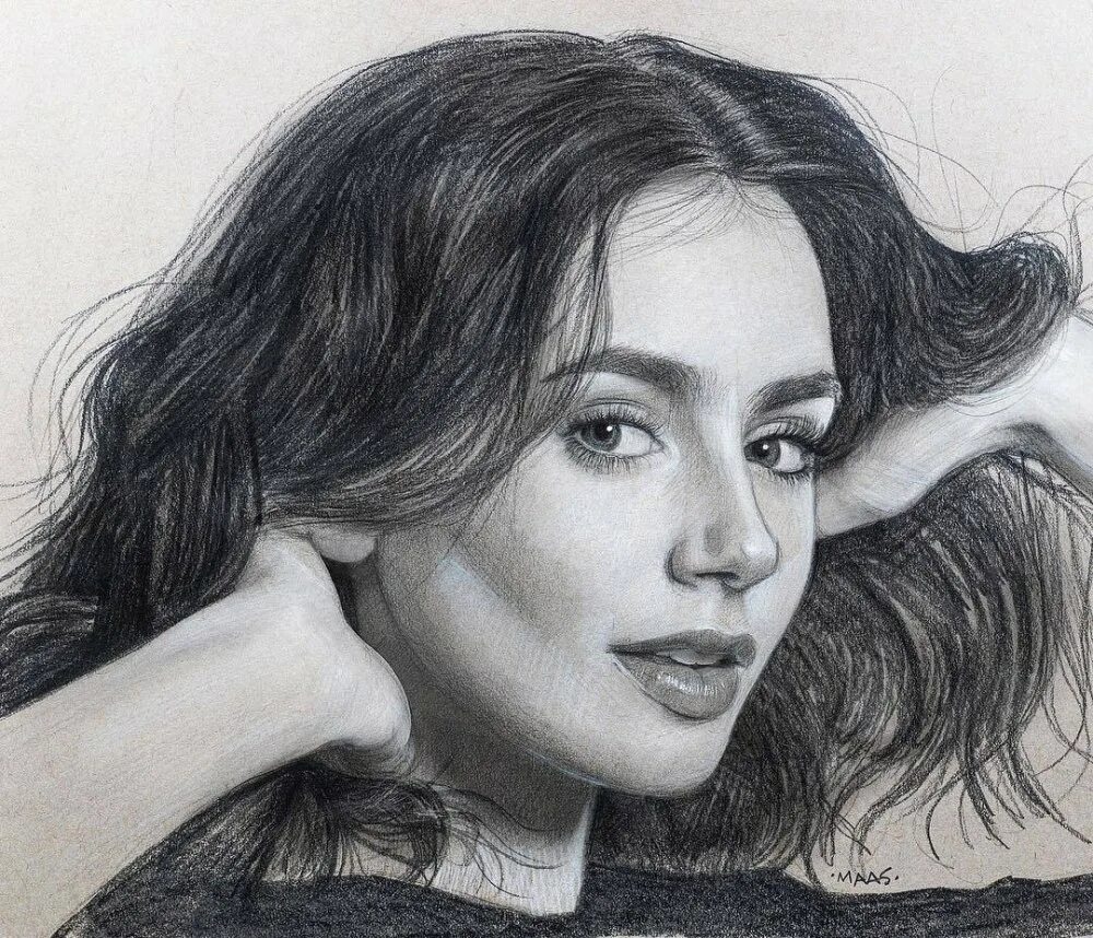 Лили Коллинз рисунок карандашом.