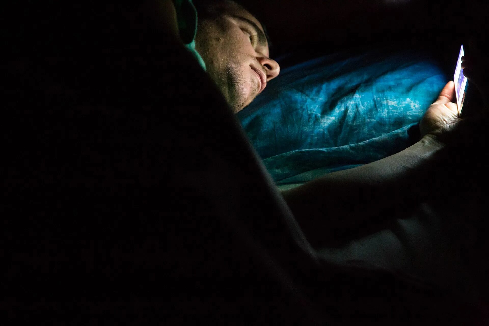 Парень сидит в темноте.