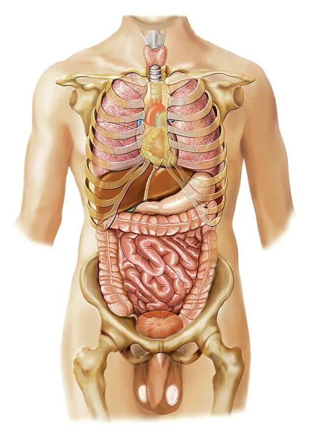 Анатомия внутренних органов с ребрами.