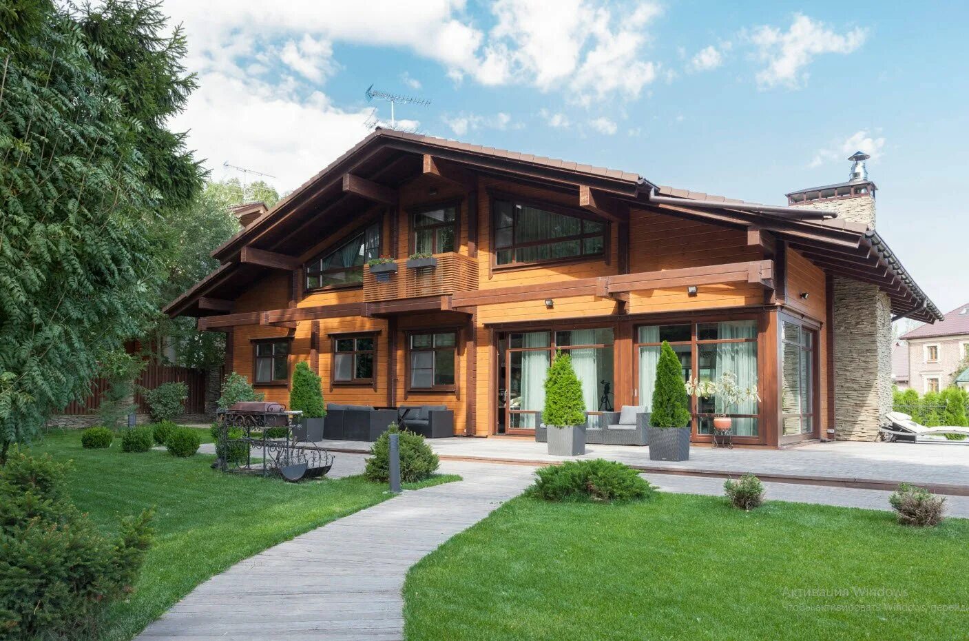 Деревянный дом с панорамными окнами.
