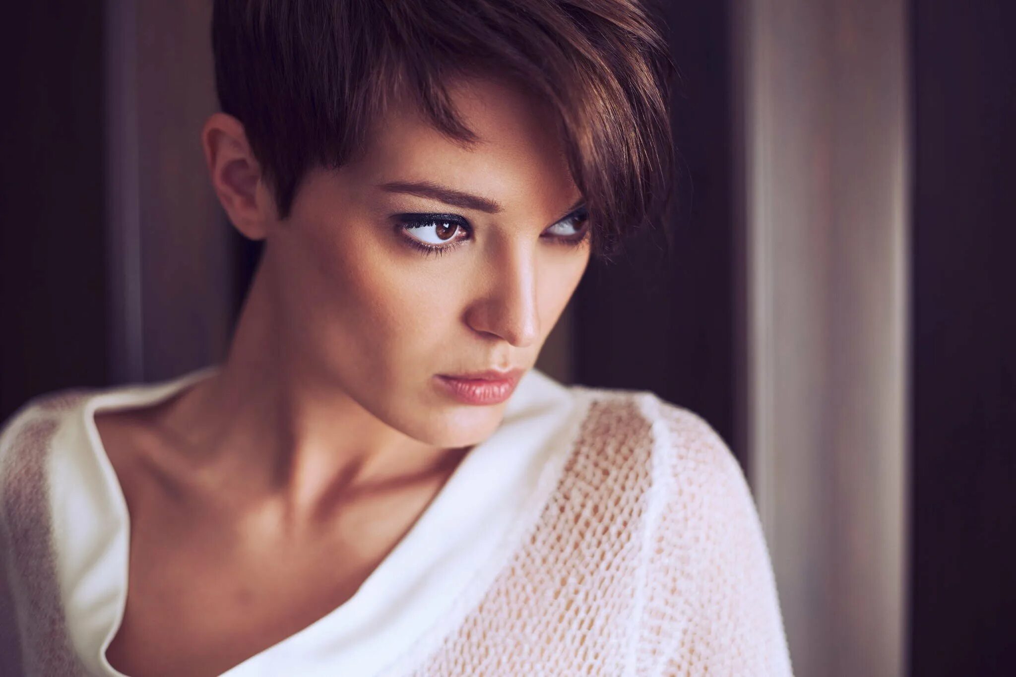 Морена Баккарин с короткой стрижкой.